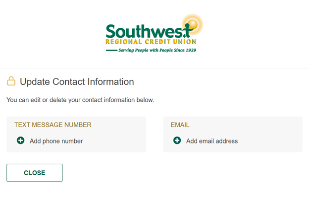 Using the Update Contact Information page, members can register a phone number or email address depending on which options are available to them.