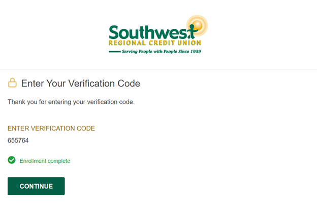 During step-up authentication using 2-Step Verification, users are presented with a verification code entry page that advises them that a verification code has been generated and sent to them. Users must retrieve the verification code from the notification text message or email, then enter and submit it for verification. If the code is verified, user authentication is complete, and the member proceeds with their digital banking activities. A user has several attempts to provide the correct verification code before the member’s account is locked out.